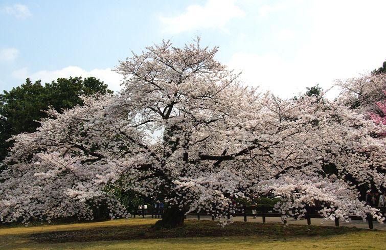 悠然と四方に太い枝を伸ばして多くの桜を圧倒する温室前の満開のソメイヨシノ。 この木は樹齢100年近く経っている。桜の木の寿命は普通60年前後であるから老木に間違いないが、 見事な樹形と衰え知らぬこの樹勢はさくら守たちが手厚く守り続けている証しでしょう。 頑張れ老木の名木よ。撮影・08.03.28.