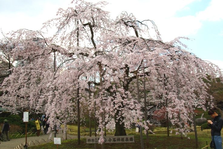 小石川後楽園の枝垂桜は別名を馬場桜と称し、推定樹齢は60年です。