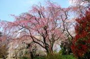 | 涵徳亭前の枝垂桜と後方の紅枝垂れ |