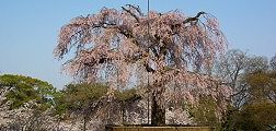 「祇園の夜桜」として有名な円山公園の「一重白彼岸枝垂桜」は樹齢80年。