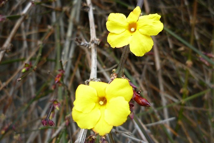 何も咲かないこの季節に咲きだすので別名迎春花と言われる。